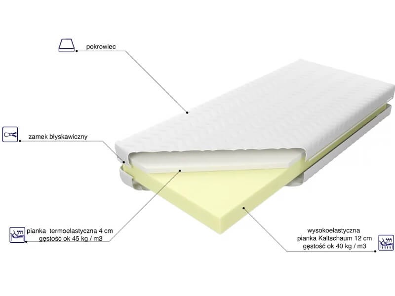 - 12 cm pianki wysokoelastycznej Kaltschaum o gęstości 40 kg/m3
